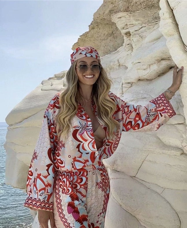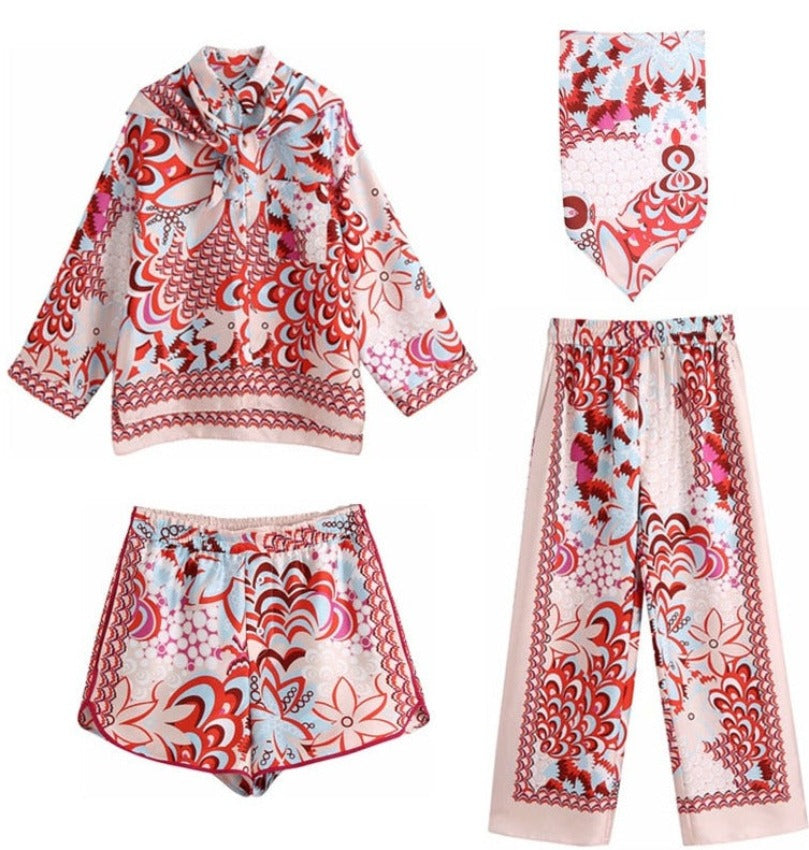 ANGELA SET has an absolutely cute pattern. You can choose 4 items: Shirt, Pants, Shirts, and Headscarf. This set is perfect for the summer season.