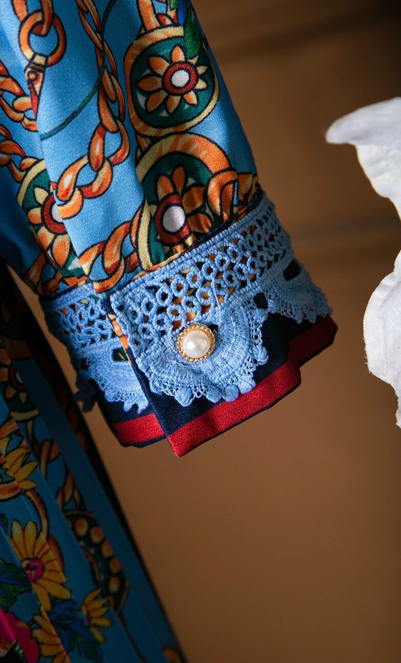EMILISSA FLORAL DRESS is your best choice to get feminine look. Richly detailed with floral print, lace, gorgeous bow and cute vintage-style buttons.