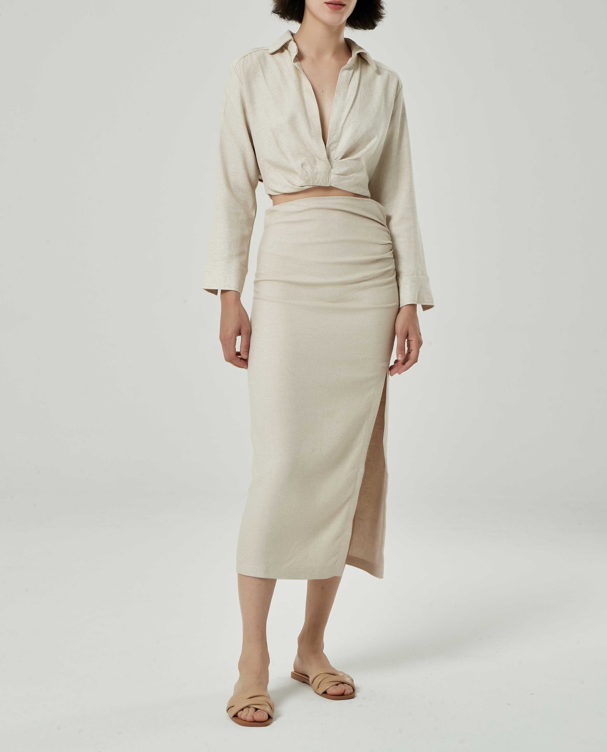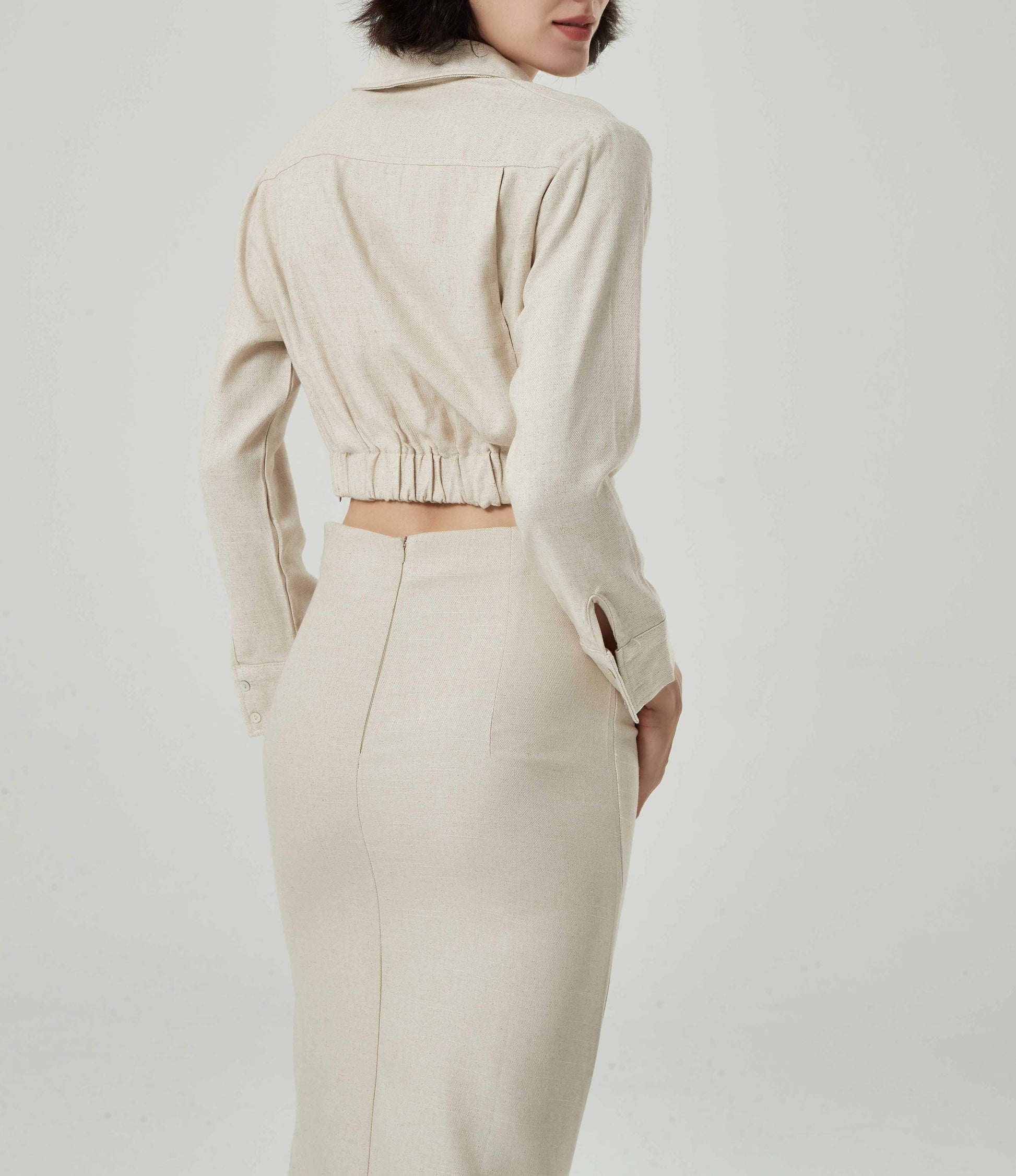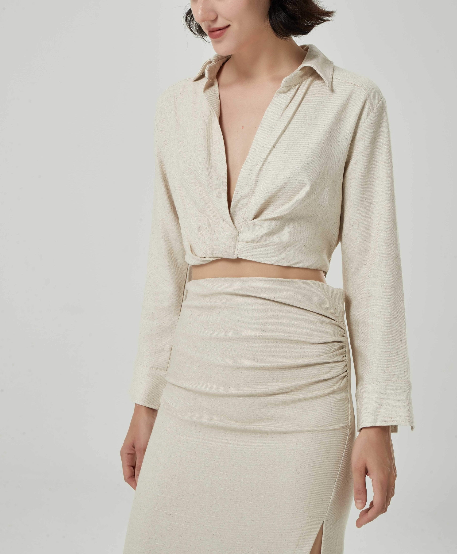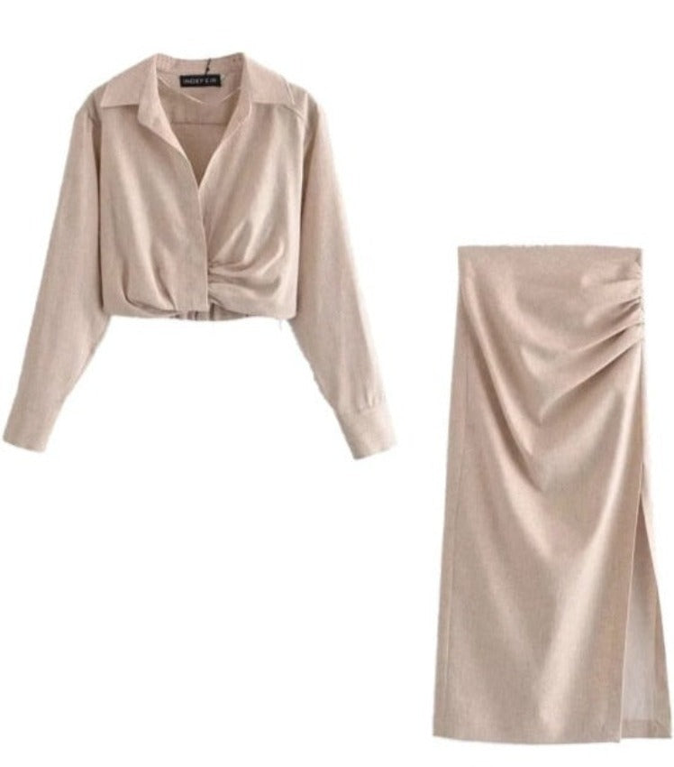KERRY 2 PIECES SET. Cropped Shirt & Draped Skirt.