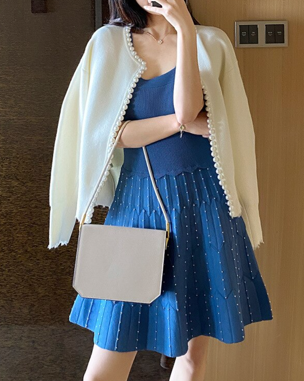 The ultimate in chic styling! Trimmed in oversized ivory pearls, the PER LA cardigan is timeless with the most coveted details of the season.