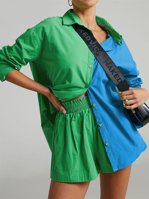 - Shirt with turn down collar