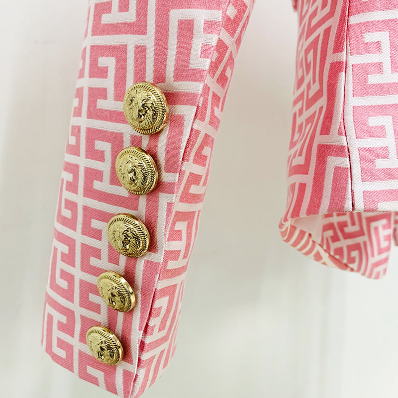 Suitable for business and pleasure. Our TAIRA BLAZER features double-breasted, golden metal buttons, elegant trendy print. Complete the look with chic jeans & skirt and boots & heels.